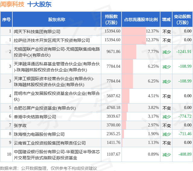 根据闻泰科技2025年三季报公布的十大股东详情如下: