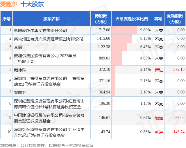 根据麦趣尔2025年三季报公布的十大股东详情如下: