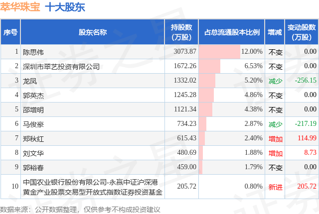 根据萃华珠宝2025年三季报公布的十大股东详情如下: