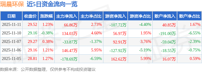 11月11日的资金流向数据方面,主力资金净流入66.86万元,占总成交额2.73%,游资资金净流出107.72万元,占总成交额4.4%,散户资金净流入40.85万元,占总成交额1.67%。