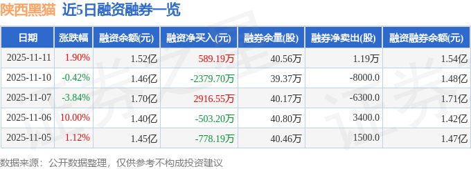 证券之星消息,截至2025年11月11日收盘,陕西黑猫(601015)报收于4.83元,上涨1.9%,换手率5.96%,成交量121.75万手,成交额5.69亿元。