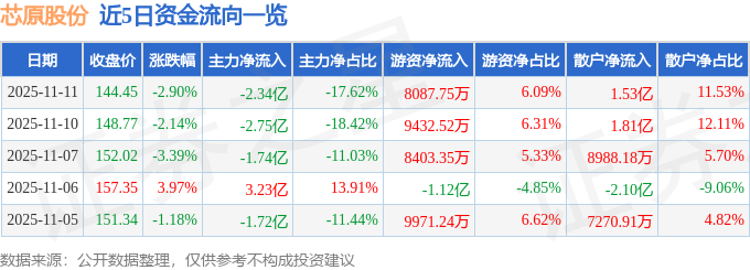 11月11日的资金流向数据方面,主力资金净流出2.34亿元,占总成交额17.62%,游资资金净流入8087.75万元,占总成交额6.09%,散户资金净流入1.53亿元,占总成交额11.53%。