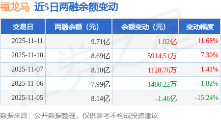 证券之星消息,11月11日,福龙马(603686)融资买入5.07亿元,融资偿还4.05亿元,融资净买入1.02亿元,融资余额9.71亿元,当日融资净买入排名第37,近3个交易日已连续净买入累计1.72亿元,近20个交易日中有13个交易日出现融资净买入。