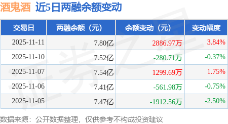 证券之星消息,11月11日,酒鬼酒(000799)融资买入1.8亿元,融资偿还1.51亿元,融资净买入2886.89万元,融资余额7.8亿元。