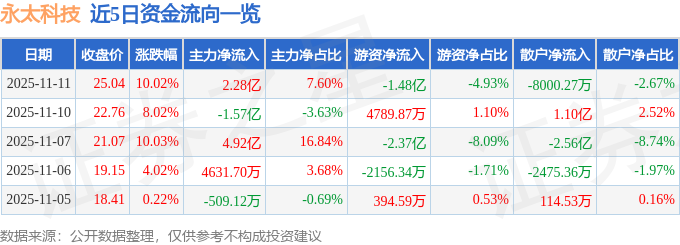 11月11日的资金流向数据方面,主力资金净流入2.28亿元,占总成交额7.6%,游资资金净流出1.48亿元,占总成交额4.93%,散户资金净流出8000.27万元,占总成交额2.67%。