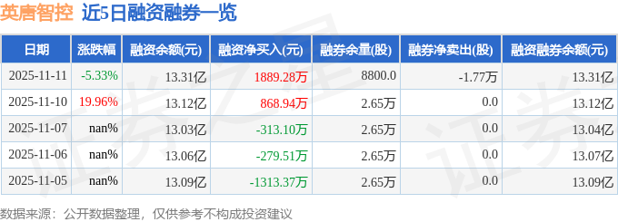 证券之星消息,截至2025年11月11日收盘,英唐智控(300131)报收于12.97元,下跌5.33%,换手率29.47%,成交量307.13万手,成交额43.02亿元。