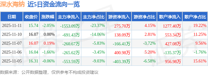 证券之星消息,截至2025年11月11日收盘,深水海纳(300961)报收于15.74元,下跌2.05%,换手率2.74%,成交量4.18万手,成交额6646.45万元。