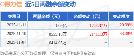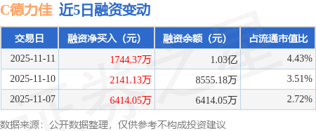 证券之星消息,11月11日,C德力佳(603092)融资买入5984.98万元,融资偿还4240.61万元,融资净买入1744.37万元,融资余额1.03亿元,近3个交易日已连续净买入累计1.03亿元。