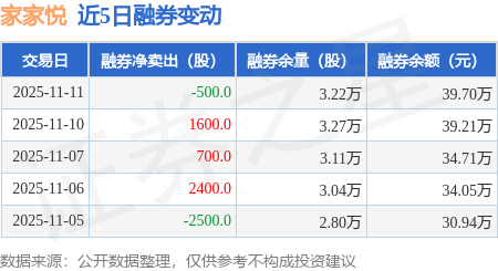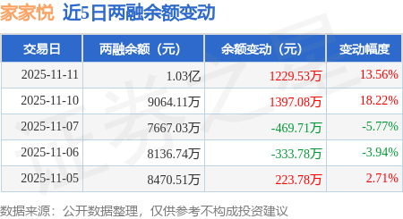 证券之星消息,11月11日,家家悦(603708)融资买入3890.12万元,融资偿还2661.09万元,融资净买入1229.03万元,融资余额1.03亿元,近20个交易日中有11个交易日出现融资净买入。