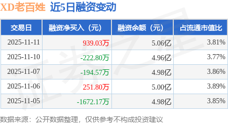 证券之星消息,11月11日,XD老百姓(603883)融资买入3879.77万元,融资偿还2940.73万元,融资净买入939.03万元,融资余额5.06亿元。