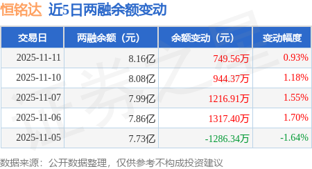 证券之星消息,11月11日,恒铭达(002947)融资买入7651.1万元,融资偿还6943.34万元,融资净买入707.76万元,融资余额8.15亿元,近3个交易日已连续净买入累计2895.38万元,近20个交易日中有12个交易日出现融资净买入。