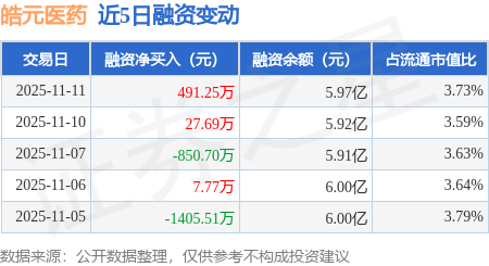 证券之星消息,11月11日,皓元医药(688131)融资买入3197.25万元,融资偿还2706.01万元,融资净买入491.25万元,融资余额5.97亿元,近20个交易日中有12个交易日出现融资净买入。