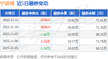 证券之星消息,11月11日,宁波港(601018)融资买入2197.03万元,融资偿还2007.2万元,融资净买入189.83万元,融资余额4.23亿元。