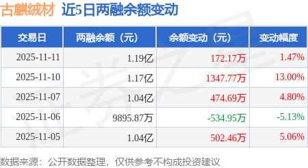 证券之星消息,11月11日,古麒绒材(001390)融资买入2701.72万元,融资偿还2529.55万元,融资净买入172.17万元,融资余额1.19亿元,近3个交易日已连续净买入累计1994.63万元,近20个交易日中有11个交易日出现融资净买入。