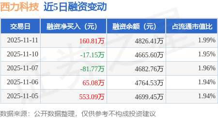 证券之星消息,11月11日,西力科技(688616)融资买入631.06万元,融资偿还470.25万元,融资净买入160.81万元,融资余额4826.41万元,近20个交易日中有11个交易日出现融资净买入。