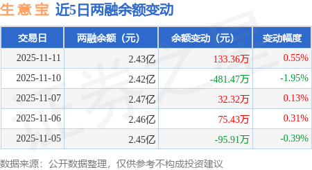 证券之星消息,11月11日,生 意 宝(002095)融资买入743.12万元,融资偿还609.76万元,融资净买入133.36万元,融资余额2.43亿元。