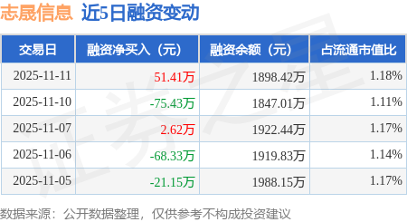 证券之星消息,11月11日,志晟信息(920171)融资买入124.92万元,融资偿还73.51万元,融资净买入51.41万元,融资余额1898.42万元。