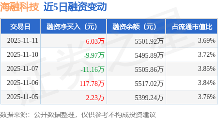 融资融券余额5501.92万元,较昨日上涨0.11%。