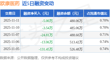 证券之星消息,11月11日,欧康医药(920230)融资买入85.2万元,融资偿还90.2万元,融资净卖出5.0万元,融资余额480.06万元。