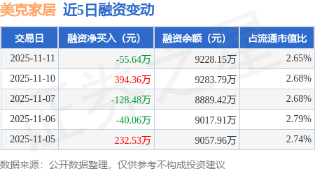 证券之星消息,11月11日,美克家居(600337)融资买入609.12万元,融资偿还664.76万元,融资净卖出55.64万元,融资余额9228.15万元。