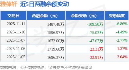融资融券余额1487.48万元,较昨日下滑6.86%。