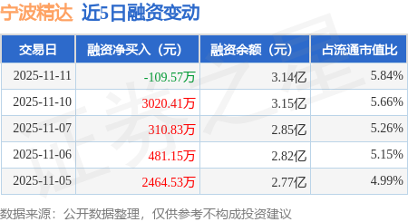 证券之星消息,11月11日,宁波精达(603088)融资买入6369.57万元,融资偿还6479.14万元,融资净卖出109.57万元,融资余额3.14亿元。