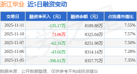 证券之星消息,11月11日,浙江华业(301616)融资买入590.67万元,融资偿还725.83万元,融资净卖出135.17万元,融资余额8189.88万元。