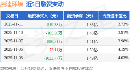 证券之星消息,11月11日,启迪环境(000826)融资买入732.03万元,融资偿还1251.41万元,融资净卖出519.38万元,融资余额1.35亿元。