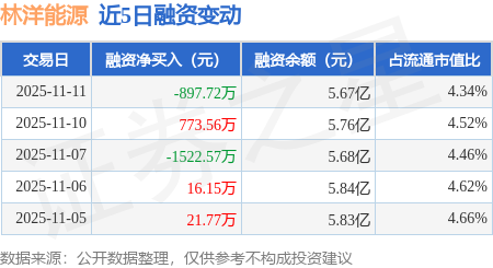 证券之星消息,11月11日,林洋能源(601222)融资买入3790.52万元,融资偿还4688.23万元,融资净卖出897.72万元,融资余额5.67亿元,近20个交易日中有13个交易日出现融资净买入。