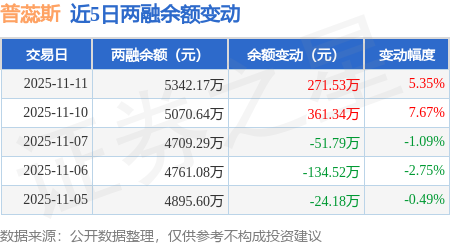 融资融券余额5342.17万元,较昨日上涨5.35%。