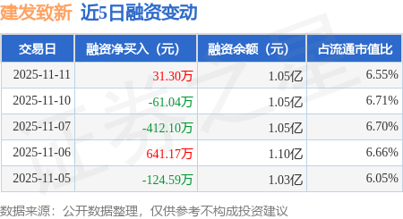证券之星消息,11月11日,建发致新(301584)融资买入2637.84万元,融资偿还2606.54万元,融资净买入31.3万元,融资余额1.05亿元,近20个交易日中有13个交易日出现融资净买入。