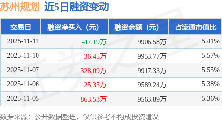 证券之星消息,11月11日,苏州规划(301505)融资买入709.28万元,融资偿还756.46万元,融资净卖出47.19万元,融资余额9906.58万元。