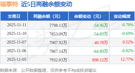 证券之星消息,11月11日,福事特(301446)融资买入1315.65万元,融资偿还1370.62万元,融资净卖出54.96万元,融资余额7798.13万元。