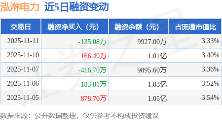 证券之星消息,11月11日,泓淋电力(301439)融资买入729.05万元,融资偿还864.14万元,融资净卖出135.08万元,融资余额9927.0万元。