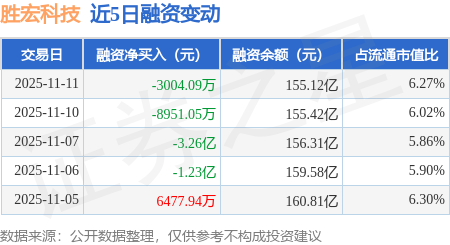 证券之星消息,11月11日,胜宏科技(300476)融资买入15.98亿元,融资偿还16.28亿元,融资净卖出3004.09万元,融资余额155.12亿元,近20个交易日中有11个交易日出现融资净买入。