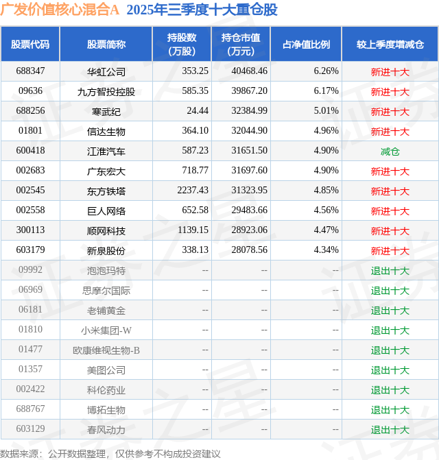 根据2025基金Q3季报公募基金重仓股数据,重仓该股的公募基金共94家,其中持有数量最多的公募基金为广发基金的广发价值核心混合A。广发价值核心混合A目前规模为40.9亿元,最新净值0.9571(11月11日),较上一交易日下跌0.18%,近一年上涨53.14%。该公募基金现任基金经理为吴远怡。吴远怡在任的基金产品包括:广发创新升级混合,管理时间为2020年9月30日至今,期间收益率为-17.22%;广发科技创新混合A,管理时间为2020年11月18日至今,期间收益率为85.16%;广发北交所精选两年定开混合A,管理时间为2021年11月23日至今,期间收益率为80.94%;