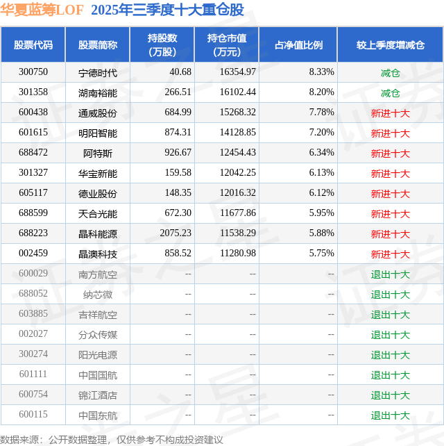 重仓晶科能源的前十大公募基金请见下表: