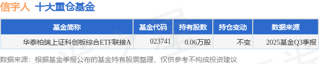 根据2025基金Q3季报公募基金重仓股数据,重仓该股的公募基金共1家,其中持有数量最多的公募基金为华泰柏瑞基金的华泰柏瑞上证科创板综合ETF联接A。华泰柏瑞上证科创板综合ETF联接A目前规模为0.4亿元,最新净值1.3603(11月11日),较上一交易日下跌0.65%。该公募基金现任基金经理为谭弘翔。谭弘翔在任的基金产品包括:华泰柏瑞中证智能汽车主题ETF,管理时间为2021年3月10日至今,期间收益率为38.01%;华泰柏瑞中证稀土产业ETF,管理时间为2021年3月10日至今,期间收益率为90.09%;华泰柏瑞中证企业核心竞争力50ETF,管理时间为2021年6月17日至今,期间收益率为-16.99%;华泰柏瑞中证稀土产业ETF发起式联接A,管理时间为2021年12月14日至今,期间收益率为19.72%。