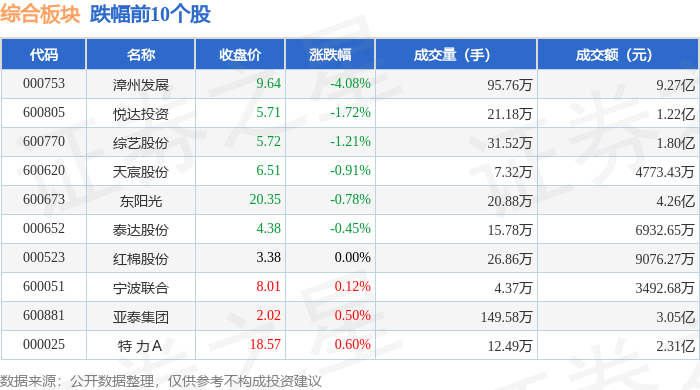 从资金流向上来看,当日综合板块主力资金净流入2.42亿元,游资资金净流出1.71亿元,散户资金净流出7118.13万元。综合板块个股资金流向见下表: