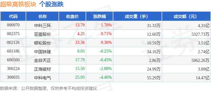 从资金流向上来看,当日超级高铁板块主力资金净流出1.9亿元,游资资金净流出374.18万元,散户资金净流入1.94亿元。超级高铁板块个股资金流向见下表: