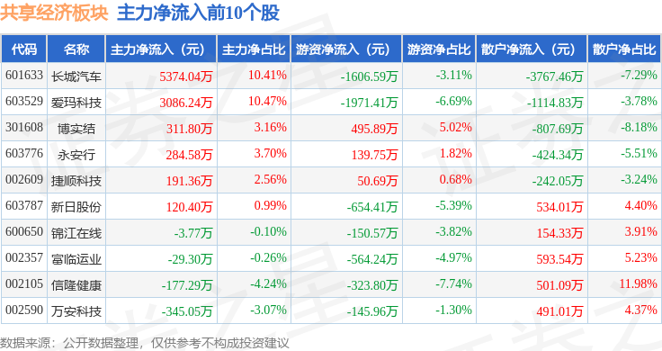 从资金流向上来看,当日共享经济板块主力资金净流出13.07亿元,游资资金净流入48.48万元,散户资金净流入13.06亿元。共享经济板块个股资金流向见下表: