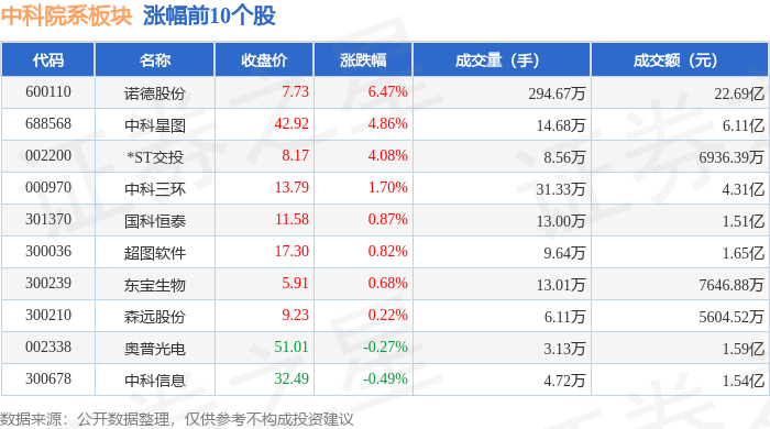 证券之星消息,11月12日中科院系板块较上一交易日下跌0.33%,福晶科技领跌。当日上证指数报收于4000.14,下跌0.07%。深证成指报收于13240.62,下跌0.36%。中科院系板块个股涨跌见下表: