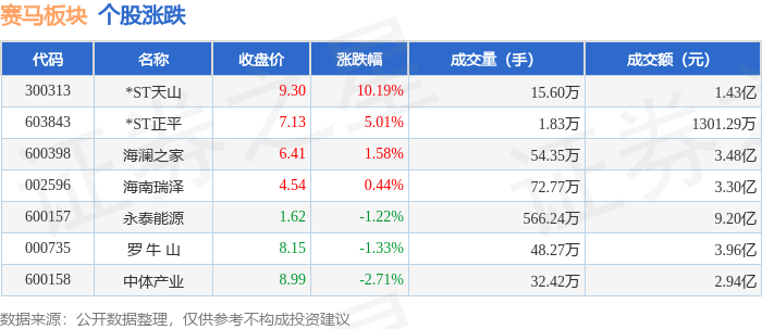 证券之星消息,11月12日赛马板块较上一交易日上涨0.11%,*ST天山领涨。当日上证指数报收于4000.14,下跌0.07%。深证成指报收于13240.62,下跌0.36%。赛马板块个股涨跌见下表: