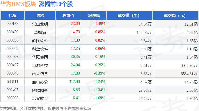 证券之星消息,11月12日华为HMS板块较上一交易日下跌1.15%,万兴科技领跌。当日上证指数报收于4000.14,下跌0.07%。深证成指报收于13240.62,下跌0.36%。华为HMS板块个股涨跌见下表: