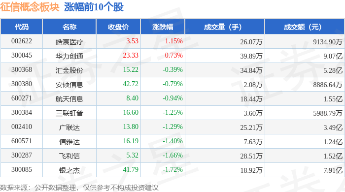 证券之星消息,11月12日征信概念板块较上一交易日下跌1.49%,拓尔思领跌。当日上证指数报收于4000.14,下跌0.07%。深证成指报收于13240.62,下跌0.36%。征信概念板块个股涨跌见下表: