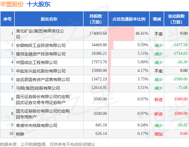 根据华塑股份2025年三季报公布的十大股东详情如下: