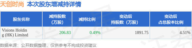 证券之星消息,11月12日天创时尚发布公告《天创时尚:股东减持计划时间届满暨减持结果公告》,其股东Visions Holding (HK) Limited于2025年8月13日至2025年11月11日间合计减持206.83万股,占公司目前总股本的0.4928%,变动期间该股股价上涨18.1%,截止11月11日收盘报7.7元。