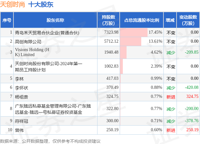 根据天创时尚2025年三季报公布的十大股东详情如下: