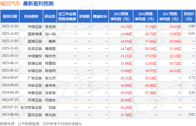 证券之星消息,2025年11月12日福田汽车(600166)发布公告称公司于2025年11月5日进行路演,东吴证券、汇安基金、华能信托、中加基金、民生加银基金、华泰证券、建信基金、远信投资、西部利得基金、富国基金、开源证券、景顺长城基金、国投瑞银基金、创金合信基金、国泰海通、中信建投基金参与。