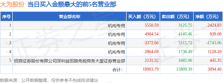 证券之星消息,沪深交易所2025年11月12日公布的交易公开信息显示,大为股份(002213)因日换手率达到20%的前5只证券登上龙虎榜。此次是近5个交易日内第3次上榜。